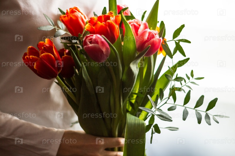 Яркий букет тюльпанов в руке