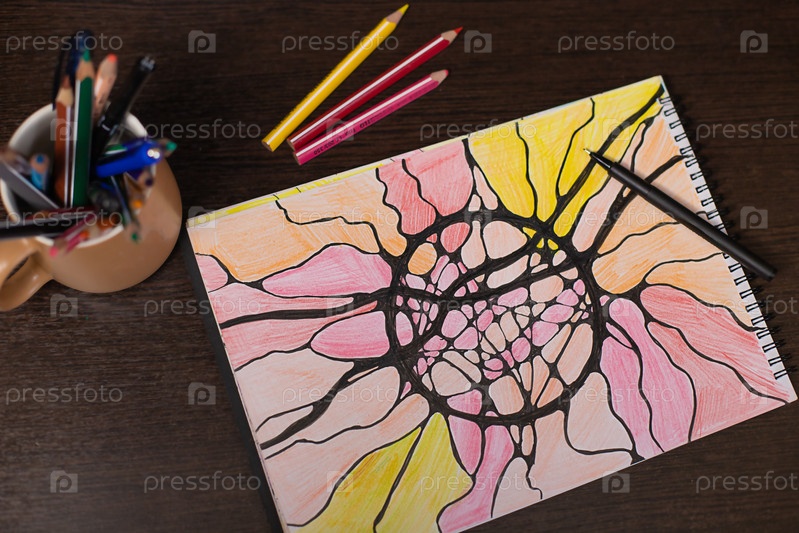 Черный маркер на разноцветном рисунке из нейрографических линий. нейрографика как психологическая техника