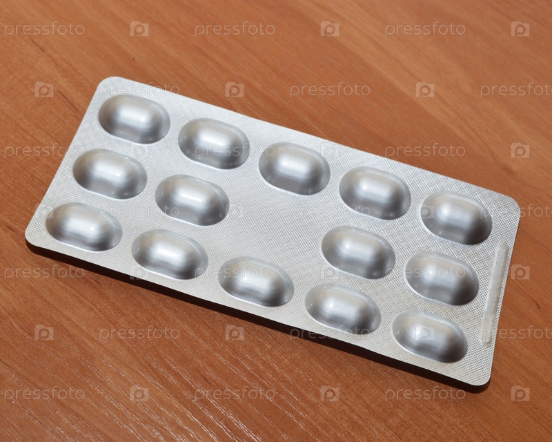 Блистер таблеток на деревянной поверхности