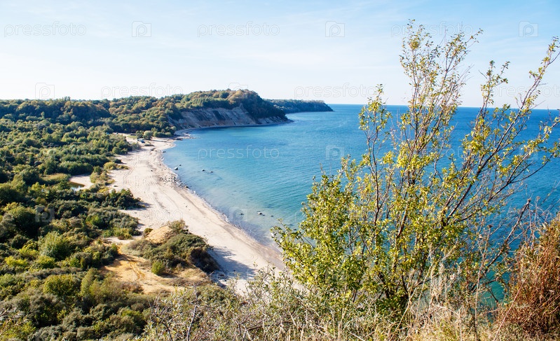 Мирный морской пейзаж с крутыми берегами