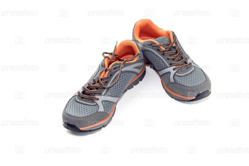 Пара мужских кроссовок на оранжевой подошве