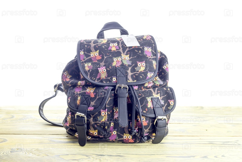 Современный, новый, женский рюкзак с крупным планом на белом фоне