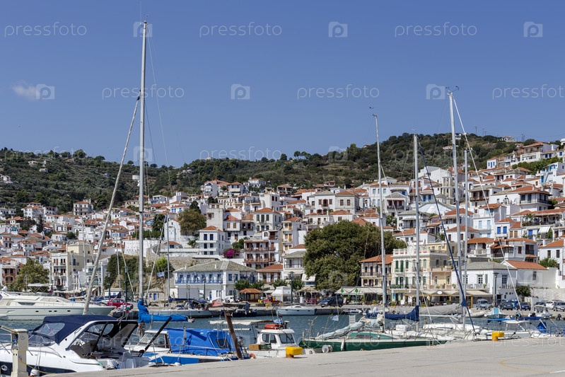На набережной острова Скопелос (Северные Спорады, Греция) в летний день