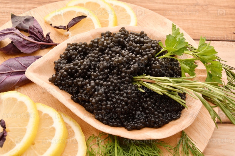 Черная икра со свежей зеленью