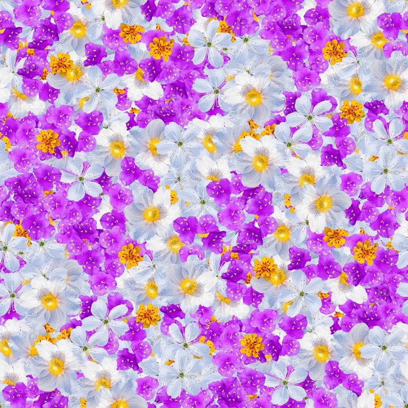 Коллаж с цветочным принтом, бесшовный разноцветный цветочный узор. нежные цветы разного размера и окраски