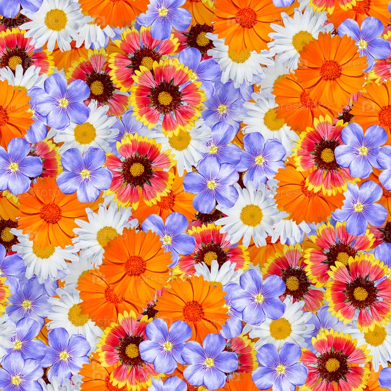 Коллаж с цветочным принтом, бесшовный разноцветный цветочный узор. нежные цветы разного размера и окраски. декоративные элементы для дизайна и творчества
