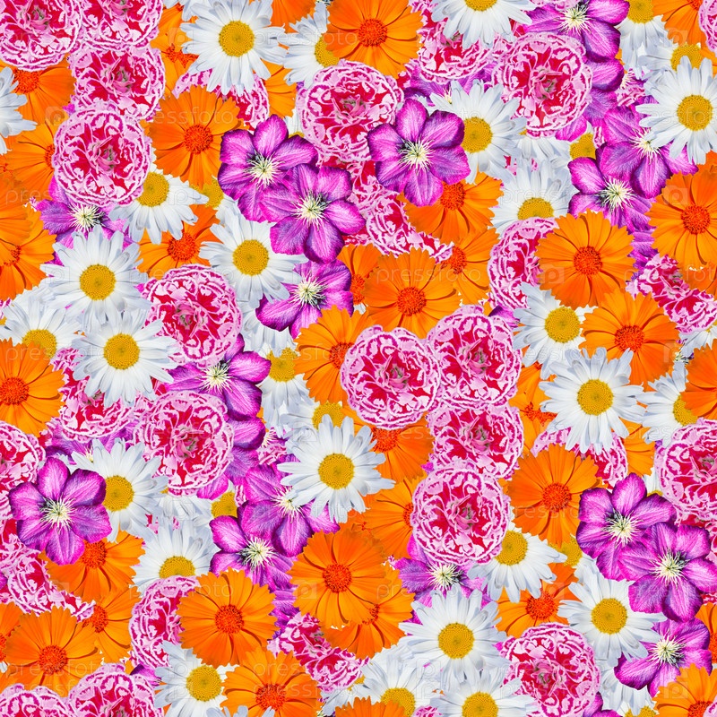 Коллаж с цветочным принтом, бесшовный разноцветный цветочный узор. нежные цветы разного размера и окраски