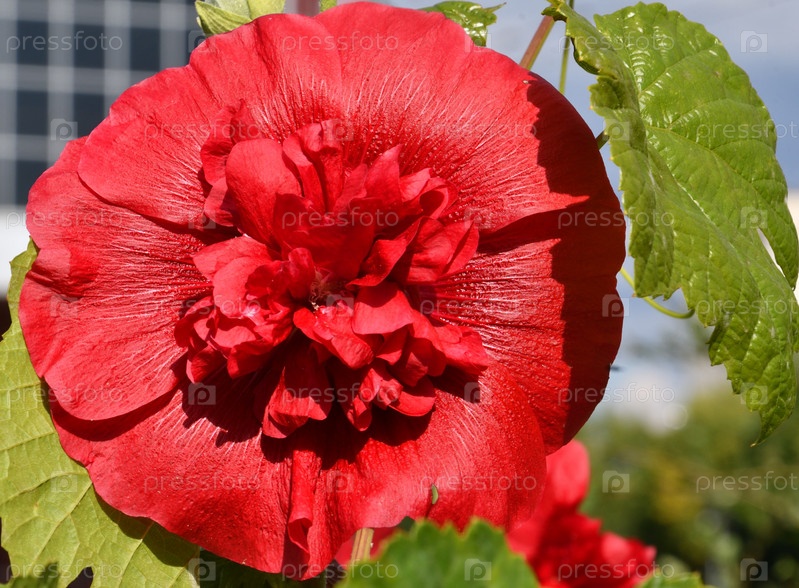 Махровый красный цветок мальвы