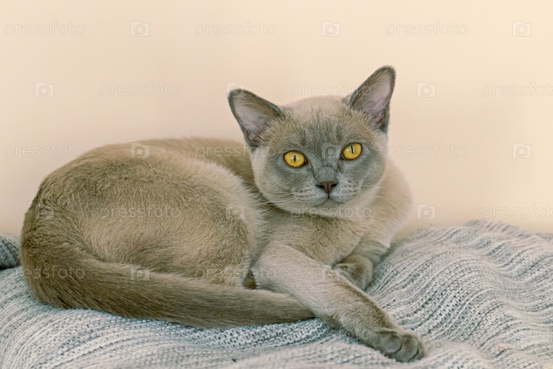 Американская традиционная бирманская кошка лежит. крупный план