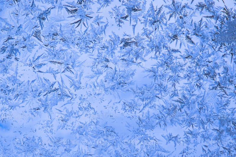 Ярко-синий морозный узор на оконном стекле в качестве абстрактного зимнего фона