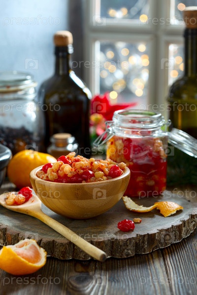 Смесь сухофруктов и изюма, пропитанных специями в роме