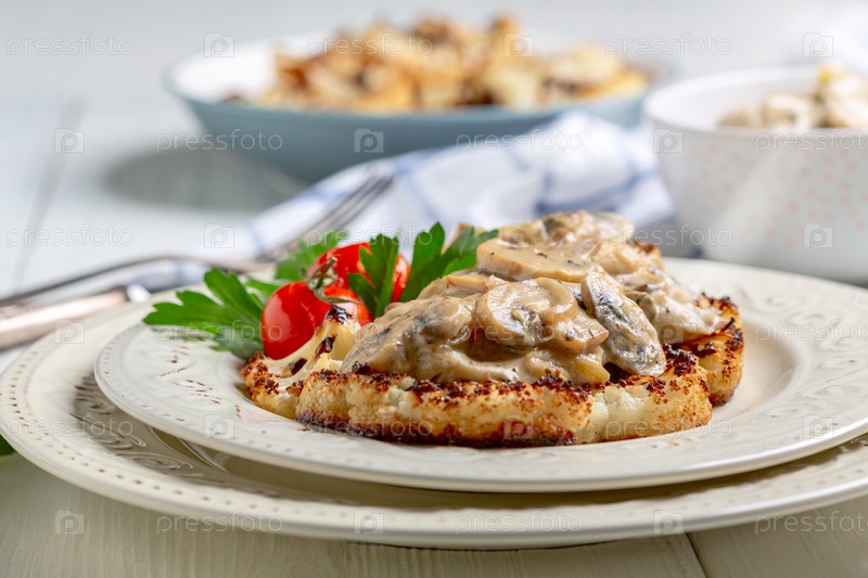 Стейк из цветной капусты с грибами