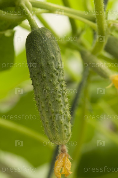 Молодые растения, цветущие огурцы с желтыми цветами, крупным планом на фоне зеленых листьев. Растущие и цветущие молодые огурцы на ветке в теплице
