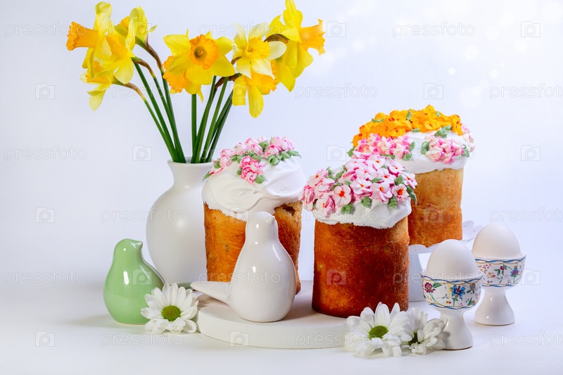Пасхальные куличи с декоративными птицами