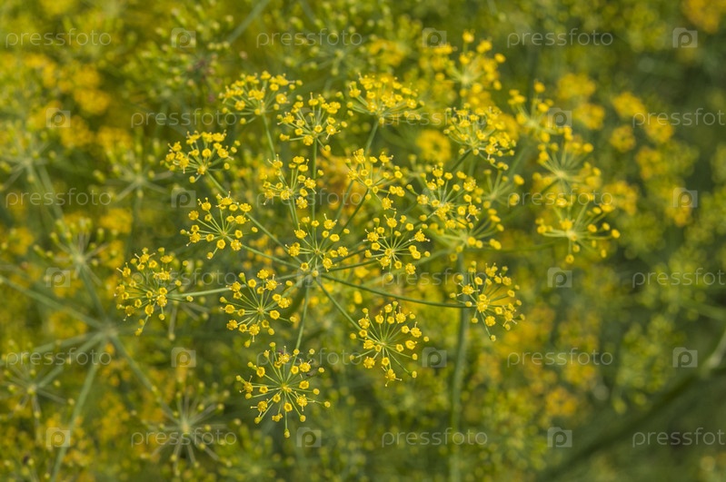 Макрофотография цветов укропа (лат. anethum) монотипный род короткоживущих однолетних травянистых растений семейства зонтичных