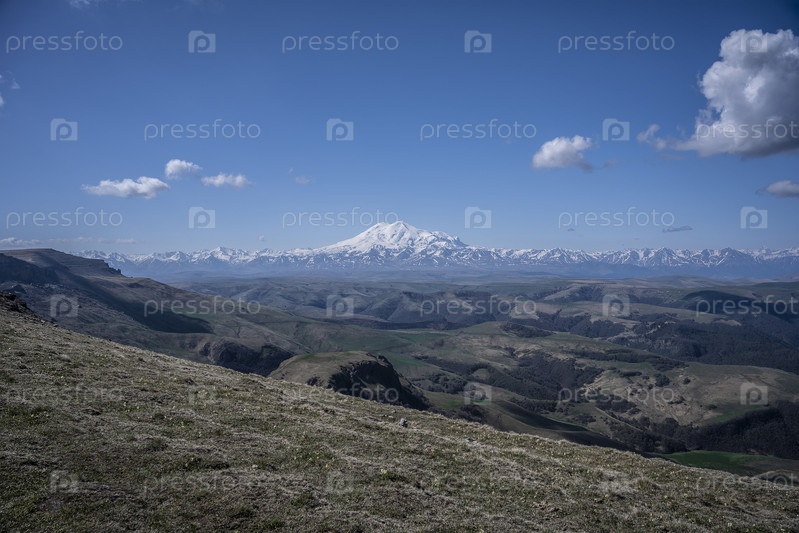 Гора Эльбрус. Вид с плато Бермамыт в России весной