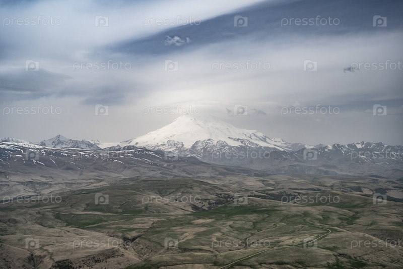 Гора Эльбрус. Вид с плато Кинжал в России весной