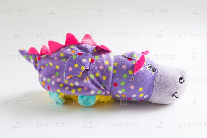 Плюшевая мягкая детская игрушка фиолетовый дракон с разноцветными круглыми пятнами