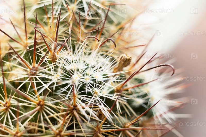 Макрос макроса шипов кактуса на белой предпосылке. Комнатные растения, уход, выращивание