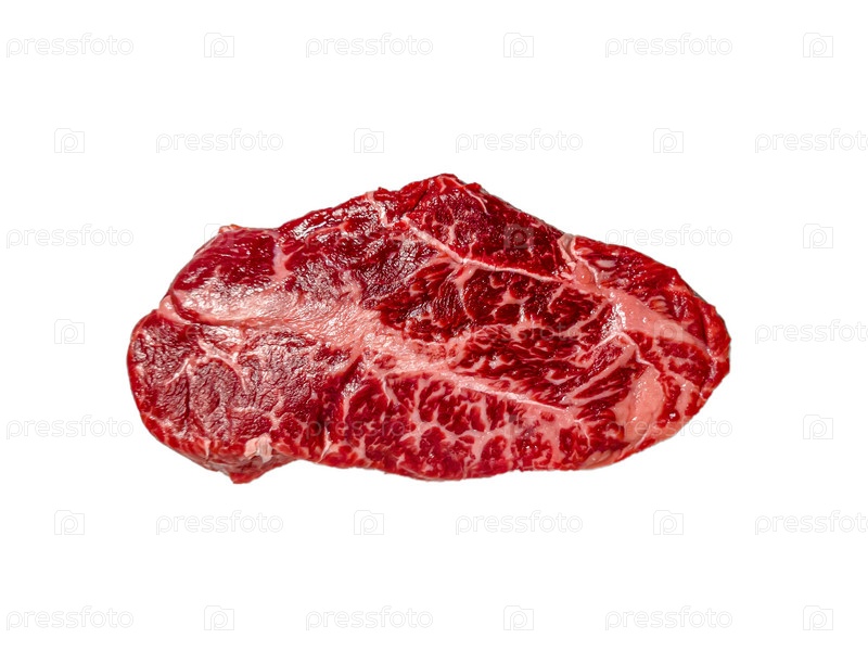 Стейк Top Blade из мраморной говядины лежит на белом фоне
