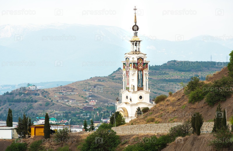 Церковь Николая Чудотворца на берегу Черного моря в Крыму, одновременно является маяком для мореплавателей