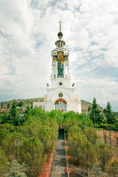 Церковь Николая Чудотворца на берегу Черного моря в Крыму, одновременно является маяком для мореплавателей