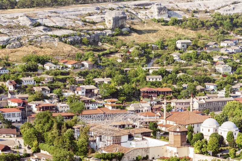 Вид сверху на Ханский дворец и город Бахчисарай