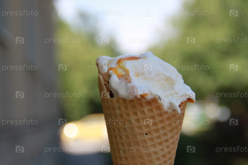 Мороженное на фоне размытой улицы