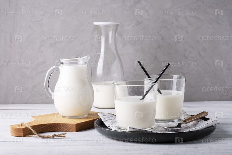 Различные стеклянные сосуды с молоком. Здоровое и диетическое питание