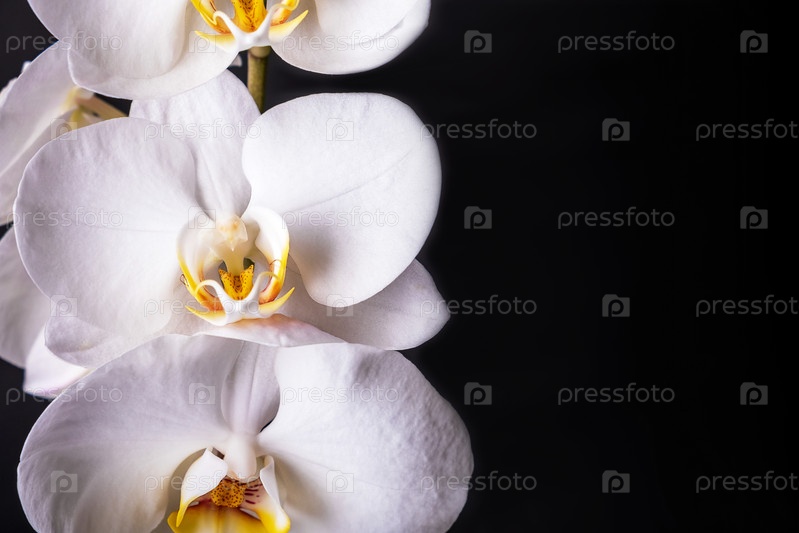 Белые цветы орхидеи фаленопсис на черном фоне