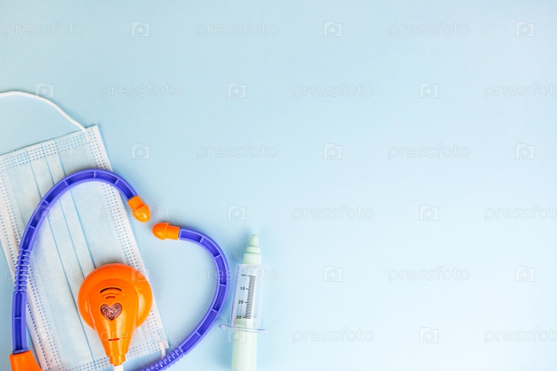 Предметы из набора детского доктора - профессиональная больничная игра, прививки, прививки, осмотр у педиатра, защитная маска, стетоскоп. Копировать пространство