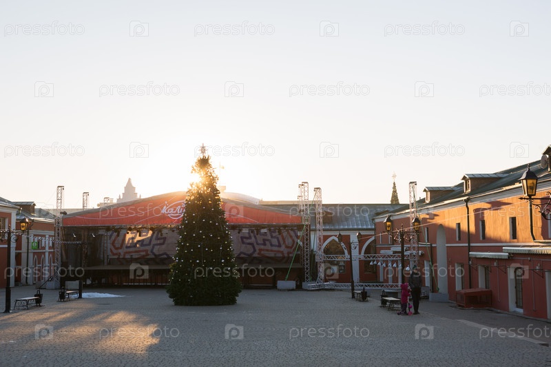 Калуга, Россия-7 декабря 2020 г. Подготовка к празднику. Город является новогодней столицей России. Елка, украшение аттракционов-старый торг, парк, сквер
