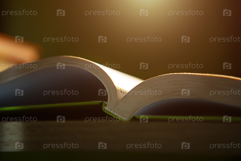 Открытая книга крупным планом. Концепция домашнего чтения бумажных книг, образования и школьного института, обратно в школу, библиотеку. Место для текста и фона