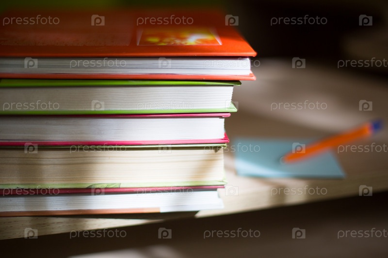 Крупный план стопки книг. Концепция домашнего чтения бумажных книг, школьного образования и института, обратно в школу. Место для текста, фон