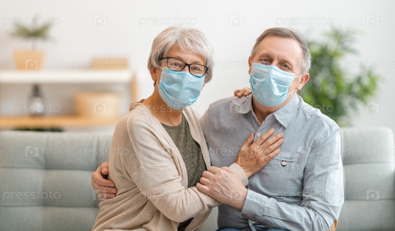 Пожилая пара в масках