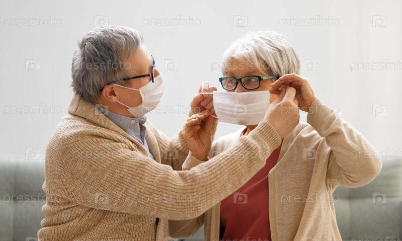 Пожилая пара в масках