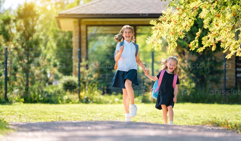 Девочки с рюкзаком идут в школу