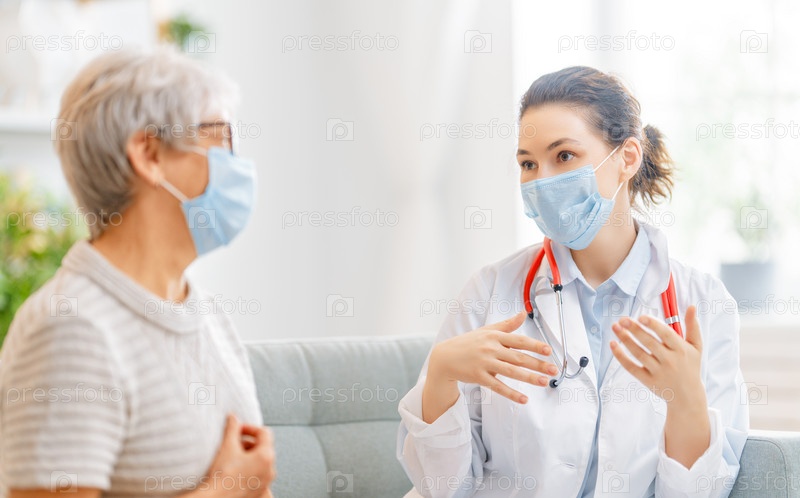 Доктор и пожилая женщина в масках