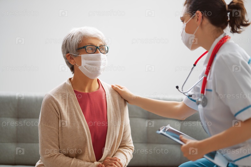 Доктор и пожилая женщина в масках