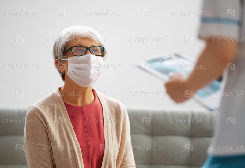 Доктор и пожилая женщина в масках