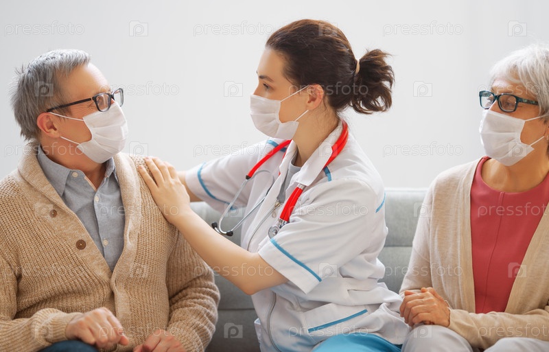 Доктор и пожилая пара в масках