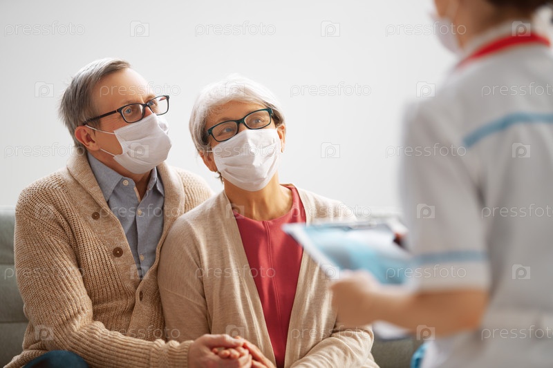 Доктор и пожилая пара в масках