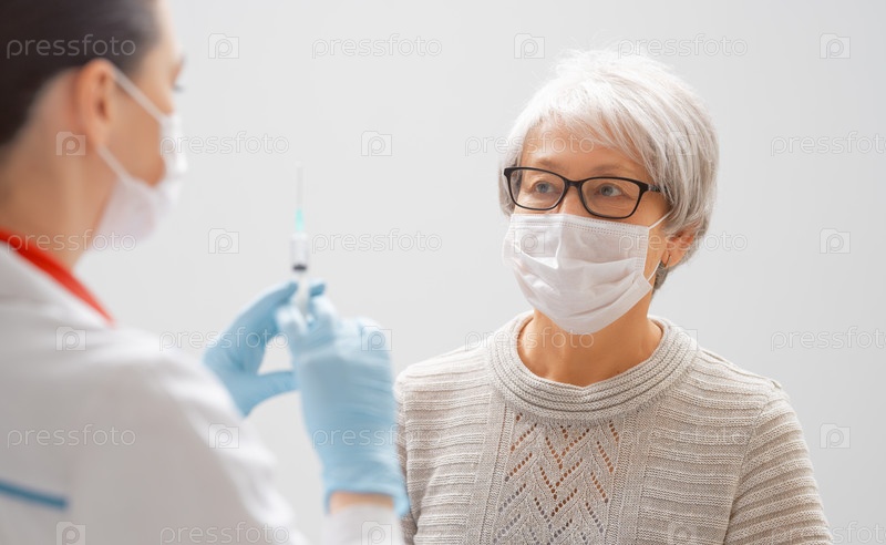 Врач делает прививку пожилой женщине