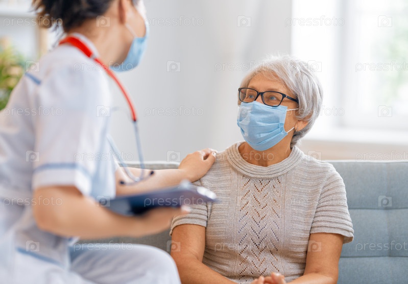 Доктор и пожилая женщина в масках