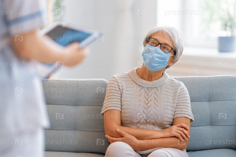 Доктор и пожилая женщина в масках