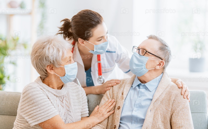 Доктор и пожилая пара в масках