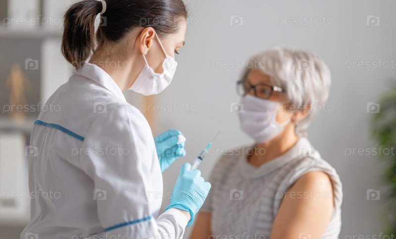 Врач делает прививку пожилой женщине