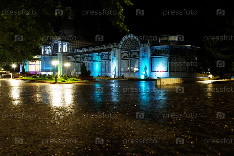 Россия, Железноводск, Ставропольский край, 27 июля 2022 г.: Ночной вид на здание Пушкинской галереи