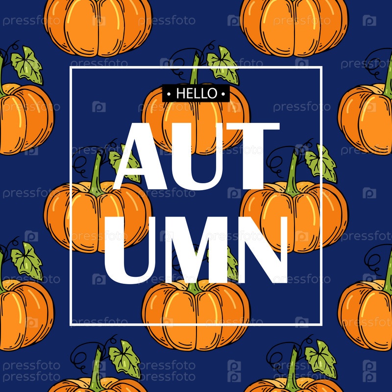 Здравствуй, осень с тыквами. Векторная иллюстрация