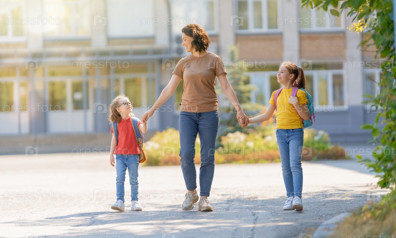 Родители и ученики идут в школу